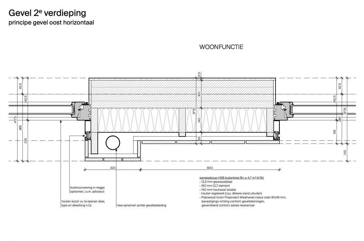 My first project as a self employed Technical Designer was commissioned by BoomBuilds, a timber construction consultancy agency. I set up the primary technical detailing for a large housing development in the town of Middelharnis.